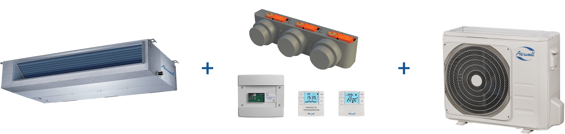 Inneneinheit, Plenum, Thermostat und Außeneinheit